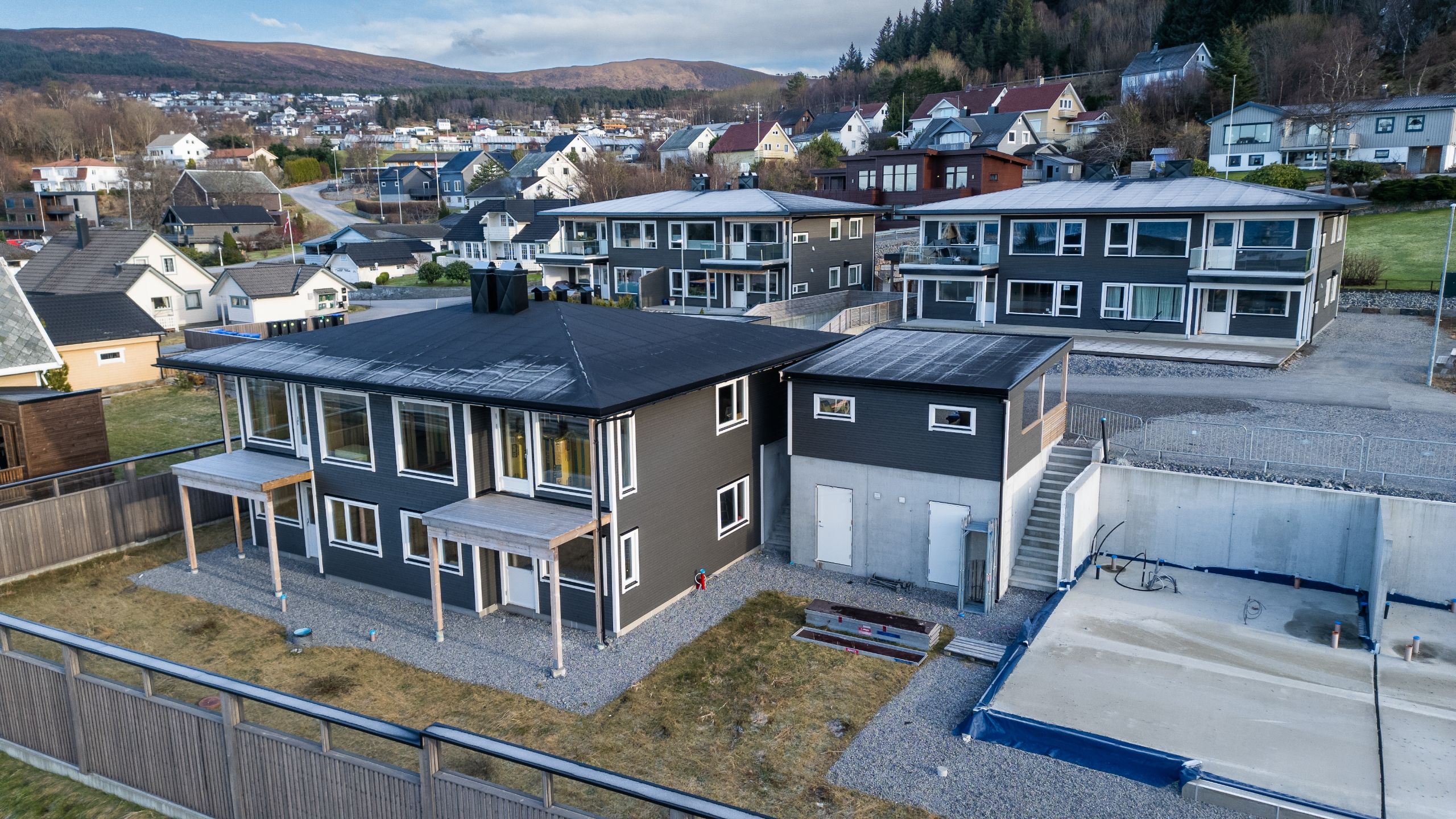 Eit flott byggefelt med bustadar i ulike størrelsar, eit godt val for folk i dei aller fleste livsfasar. I bakerste rekke kjem leilegheiter med alt på ei flate og garasjekjellar. I fremste rekke ligg tomannsbustadar med gode og skjerma hagearealer.